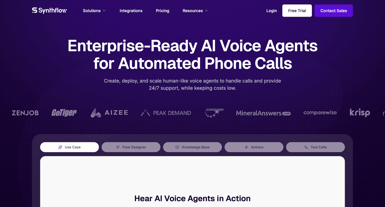 🤔 What is it? Synthflow AI is a no-code platform for designing and deploying custom AI voice agents. It’s built for enterprises and tech-forward teams needing precise call flows, multilingual support, and deep system integrations.