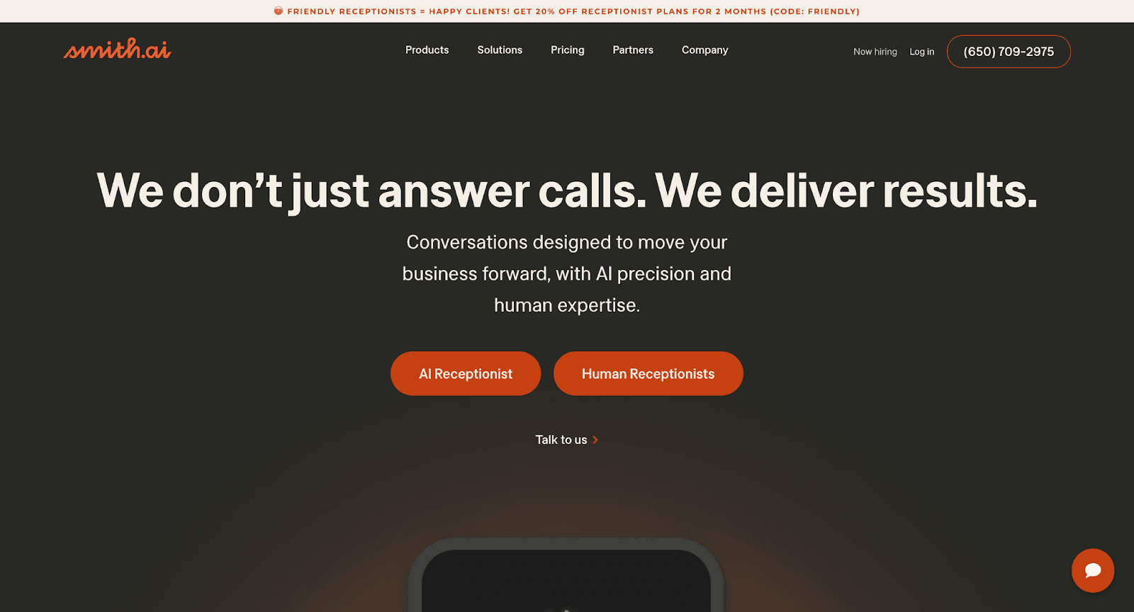 🤔 What is it? Smith.ai blends AI automation with live receptionist support, creating a hybrid model that balances efficiency with a human touch. It’s especially popular with law firms, consultancies, and professional services businesses.