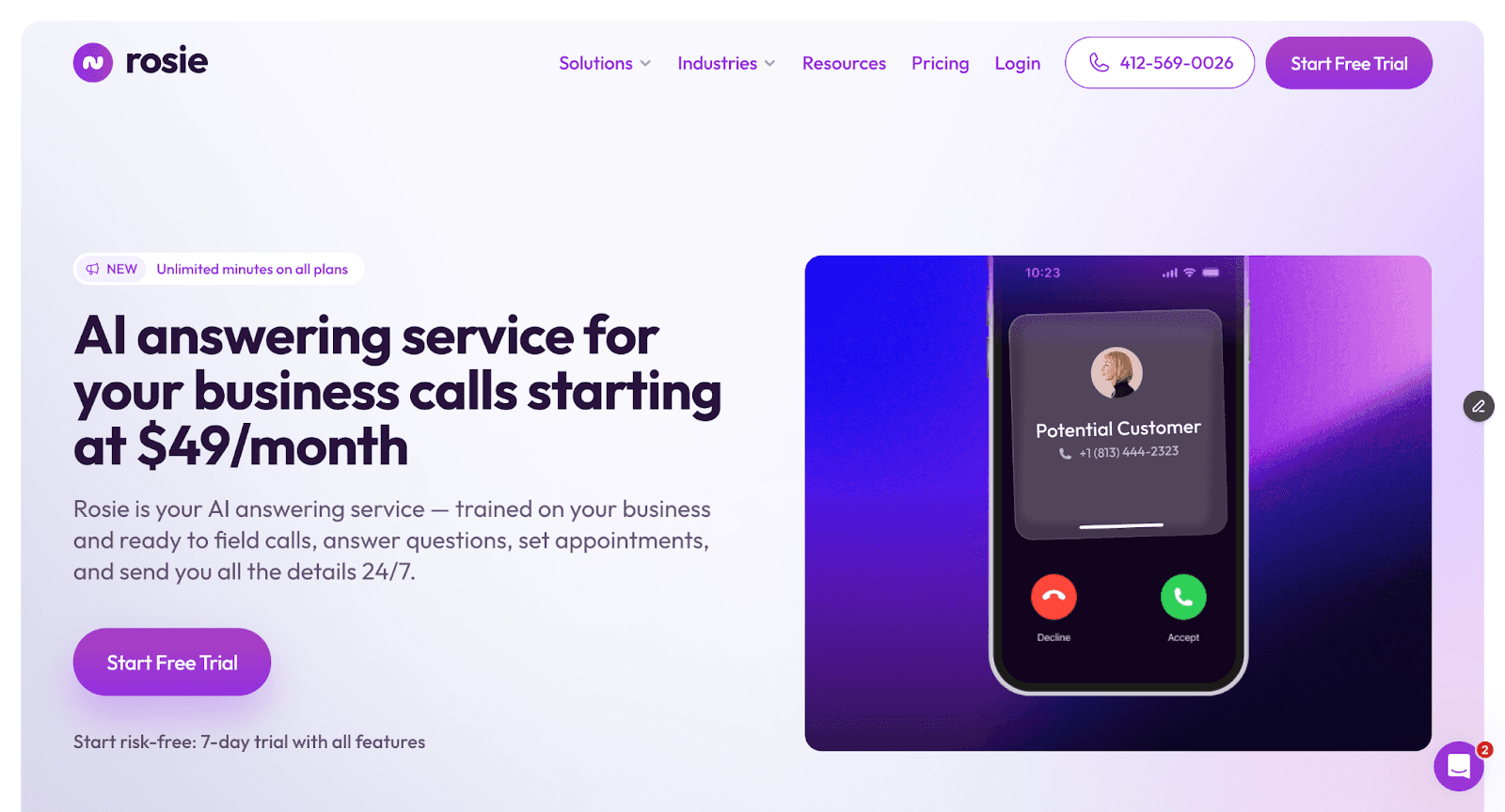 Among all the options, Rosie AI stands out as the best overall. With AI-driven conversations, easy setup, unlimited call handling minutes, and small-business-friendly pricing, it helps you stay responsive without extra overhead. Start your free trial today and see how Rosie can transform your call handling.