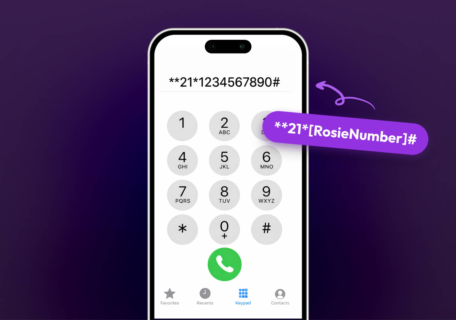Enter your carrier's forwarding code plus your Rosie number